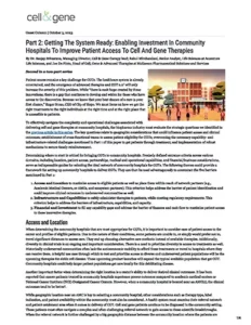 PART 2: Getting the System Ready: Enabling Investment in Community Hospitals to Improve Patient Access to Cell and Gene Therapies