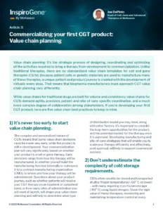 PART 3: Commercializing Your First CGT Product: Value Chain Planning