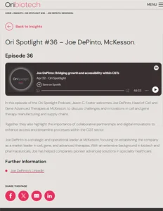 On the Ori Spotlight Podcast, Joe DePinto joins host Jason C. Foster to discuss how strategic partnerships and digital innovation are transforming CGT manufacturing, supply chains, and patient access.