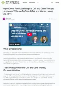 In this episode of Oncology Data Advisor, Joe DePinto and host Waqas Haque discuss the growing demand for CGT commercialization and InspiroGene’s integrated approach to expanding CGT access.