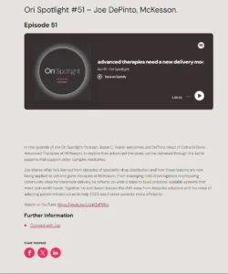 In this episode of the Ori Spotlight Podcast, Jason C. Foster welcomes Joe DePinto to explore how advanced therapies can be delivered through the same systems that support other complex medicines.